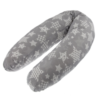 Подушка для беременных и кормящих (полистирол-шарики) цвет – серый принт – звезды
