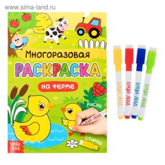 Раскраска многоразовая “Рисуй-стирай. На ферме” 12стр
