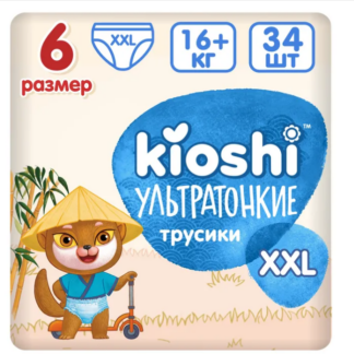 Подгузники-трусики ультратонкие размер XXL (от 16кг) 36шт Kioshi