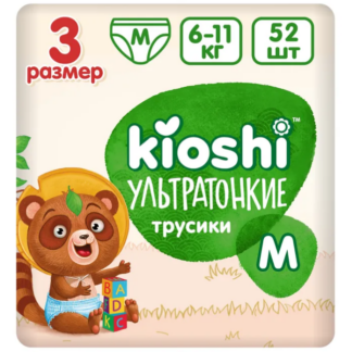 Подгузники-трусики ультратонкие размер M (6-11кг) 52шт Kioshi