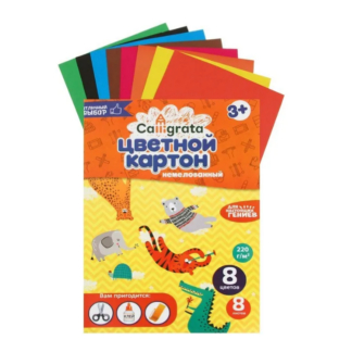 • Картон цветной немелованный А4 8 листов 8 цветов Calligrata