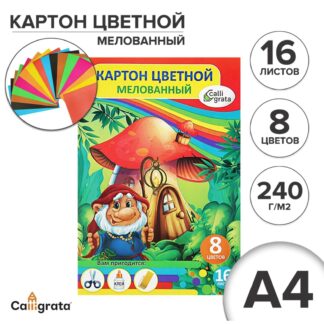 • Картон цветной мелованный А4 16 листов 8 цветов “Добрый Гном” 240г/м2