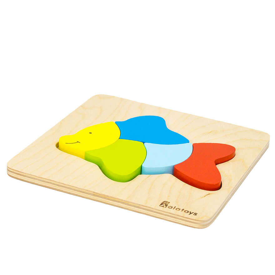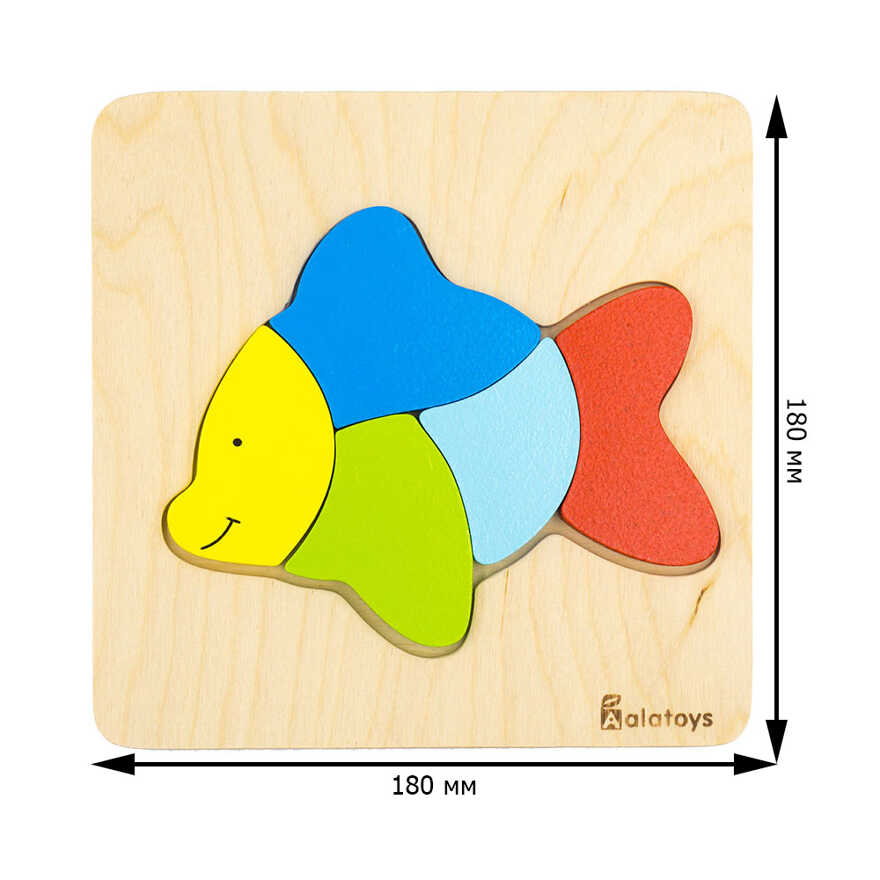 Пазл Рыбка знакомит малыша с животным миром. Малыш учится сопоставлять фигуры и находить им место на основе пазла. Также ребенок знакомится со строением рыбки.