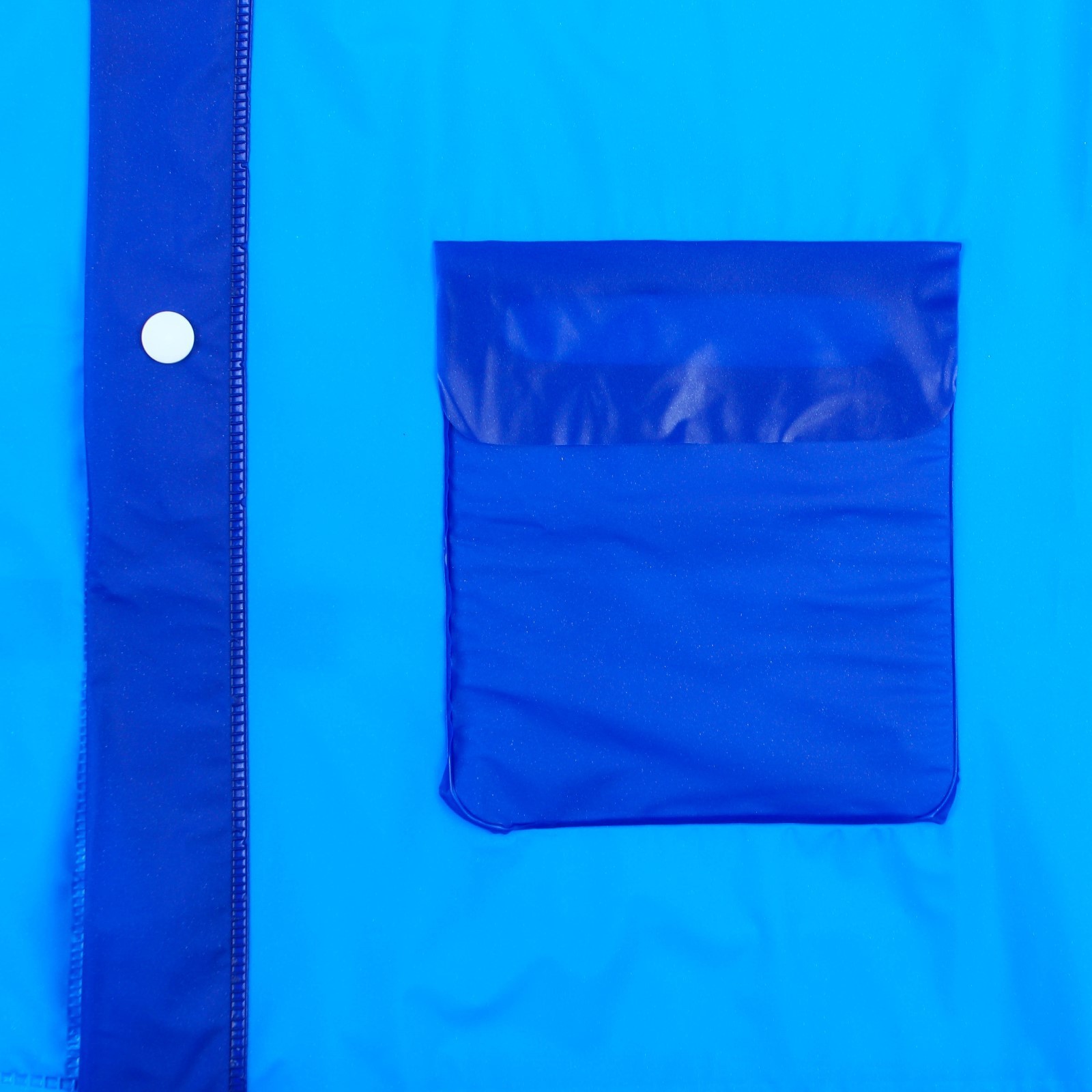 Дождевик выполнен из ПВХ, швы сделаны прочной спайкой. С удобными кнопками на дождевике справится даже малыш.