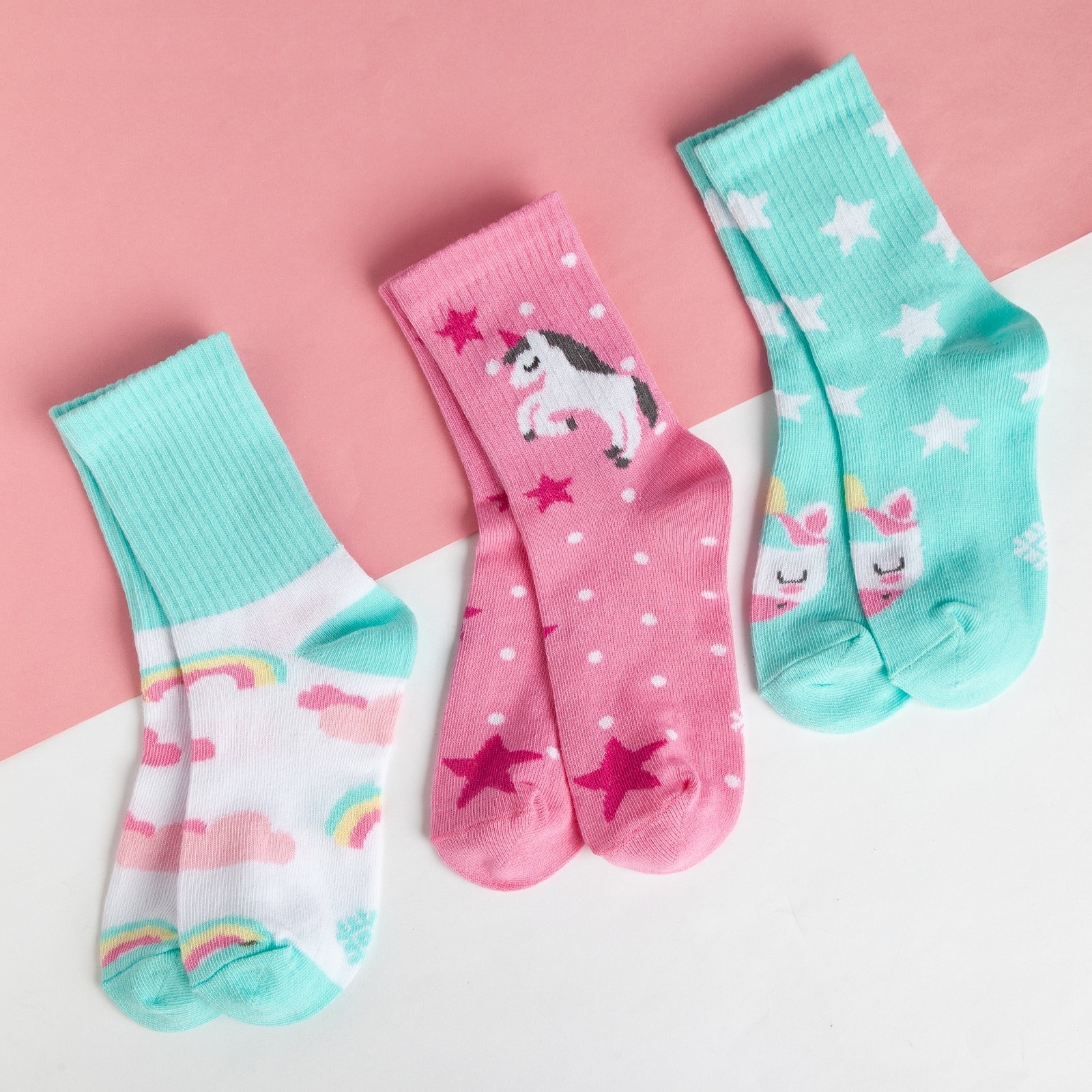 Набор детских носков KAFTAN “Единорог” 3 пары, состав: полиамид 15%, хлопок 80%, эластан 5%.