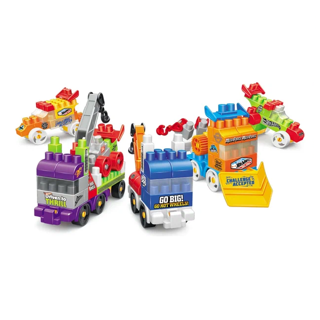 Сборные машинки из блочного конструктора, для детей от 3х лет. Детали конструктора изготовлены из безопасного пластика и пищевых красителей. Уникальность каждой машинке придает входящий в комплект лист с наклейками, выполненными в фирменном стиле Hot Wheels.