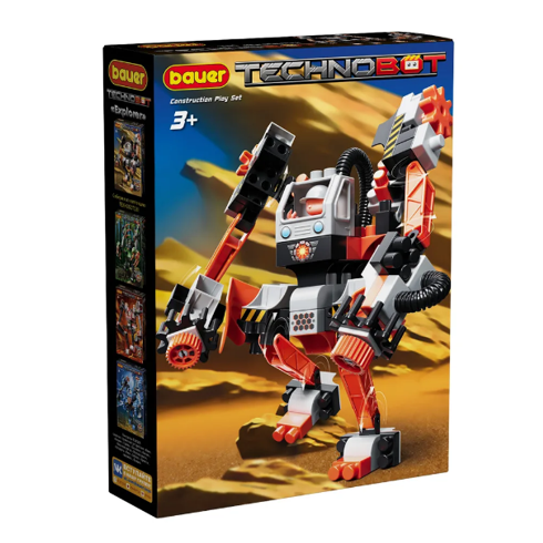 Тематический блочный конструктор, с большим современным роботом строителем Техноботом Bauer, который поможет Вашему маленькому строителю воплотить в жизнь любую свою фантазию. Развивает мелкую моторику, цветовосприятие, аналитические способности, стимулирует творческую активность ребенка. Предназначен для малышей от 3х лет. Детали конструктора изготовлены из безопасного пластика и пищевого красителя, подходят к другим наборам от Bauer. Начни свое путешествие в будущее!