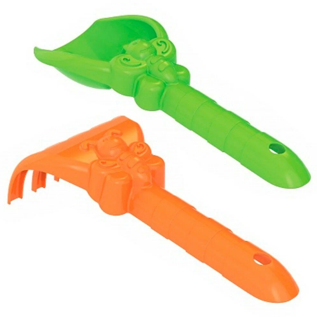 Совок и грабельки благодаря красивому рельефу дополняют друг друга.
