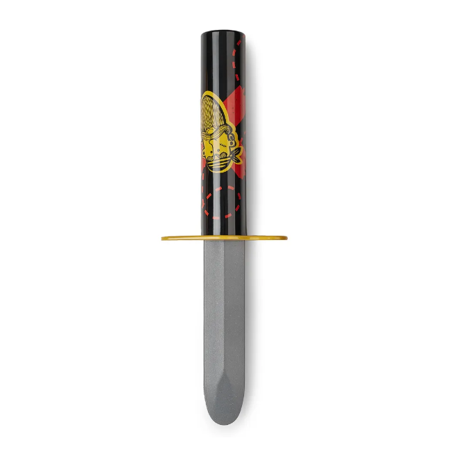 Игрушечный нож-обманка сделает игры в пиратов и воинов весёлыми и безопасными. Нож прячет «лезвие» при соприкосновении с твёрдой поверхностью – почти как у каскадёров в кино. Игра с таким ножиком исключает травмы и болевые ощущения.