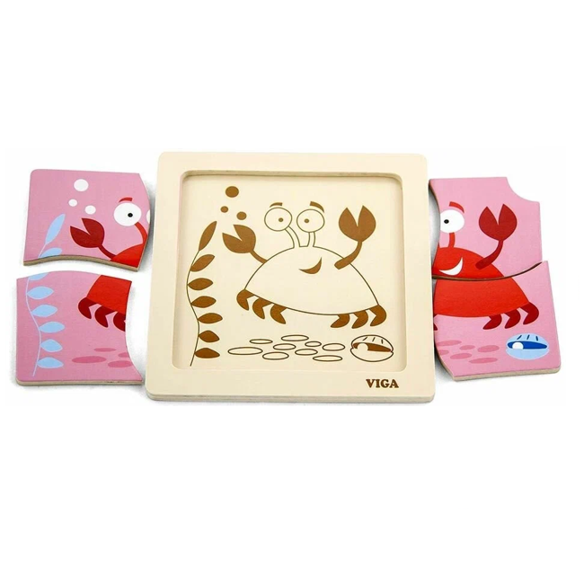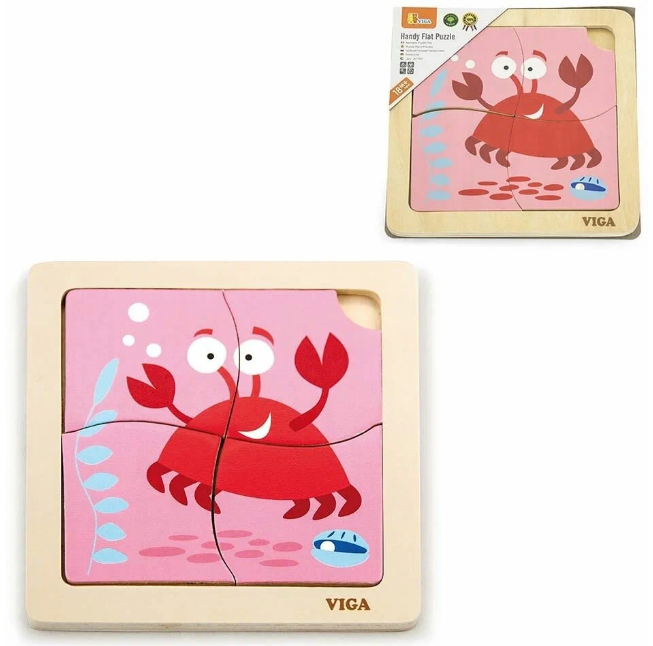 Деревянный пазл в рамке со вспомогательным рисунком на основе. Яркий простой рисунок, удобные большие детали сделают игру увлекательной.