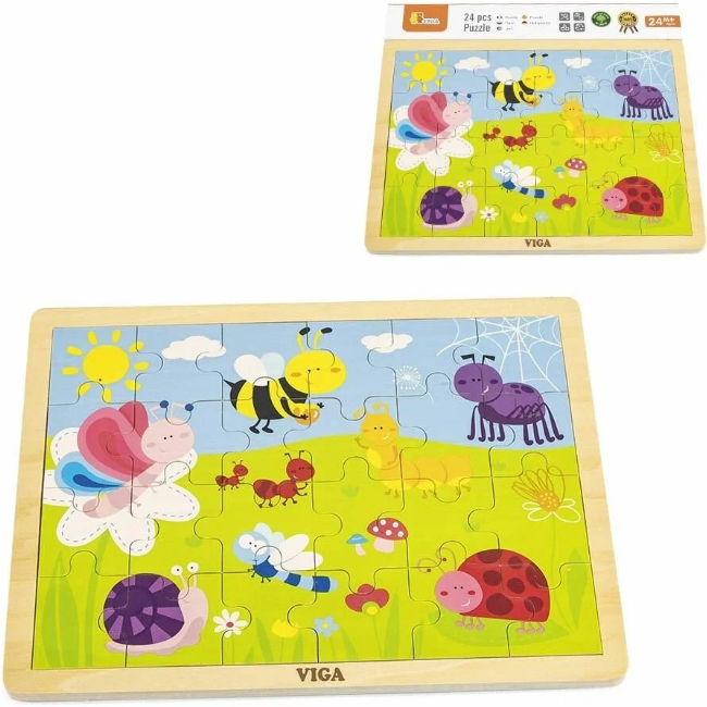 Чудесный деревянный пазл Полянка станет отличным подарком для вашего крохи. Он состоит из рамки и 24-х элементов, из которых можно собрать рисунок. С помощью этого пазла малыш сможет узнать и выучить маленьких насекомых, которые живут на полянке, а также развить мелкую моторику, воображение, восприятие формы и цвета.