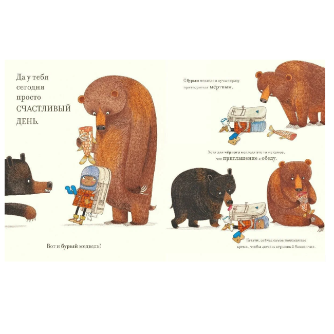 Герой отправляется в лес, чтобы понаблюдать медведей в естественной среде обитания. Удача на его стороне: он встречает и бурого, и чёрного. Однако очень скоро выясняется, что его новое иллюстрированное руководство по прикладной медведологии не такой уж надёжный гид и советчик.