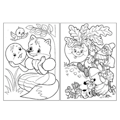 Большая раскраска для детей младшего и среднего возраста со сказочными героями из русских сказок. Развивает моторику, память и творческие способности.